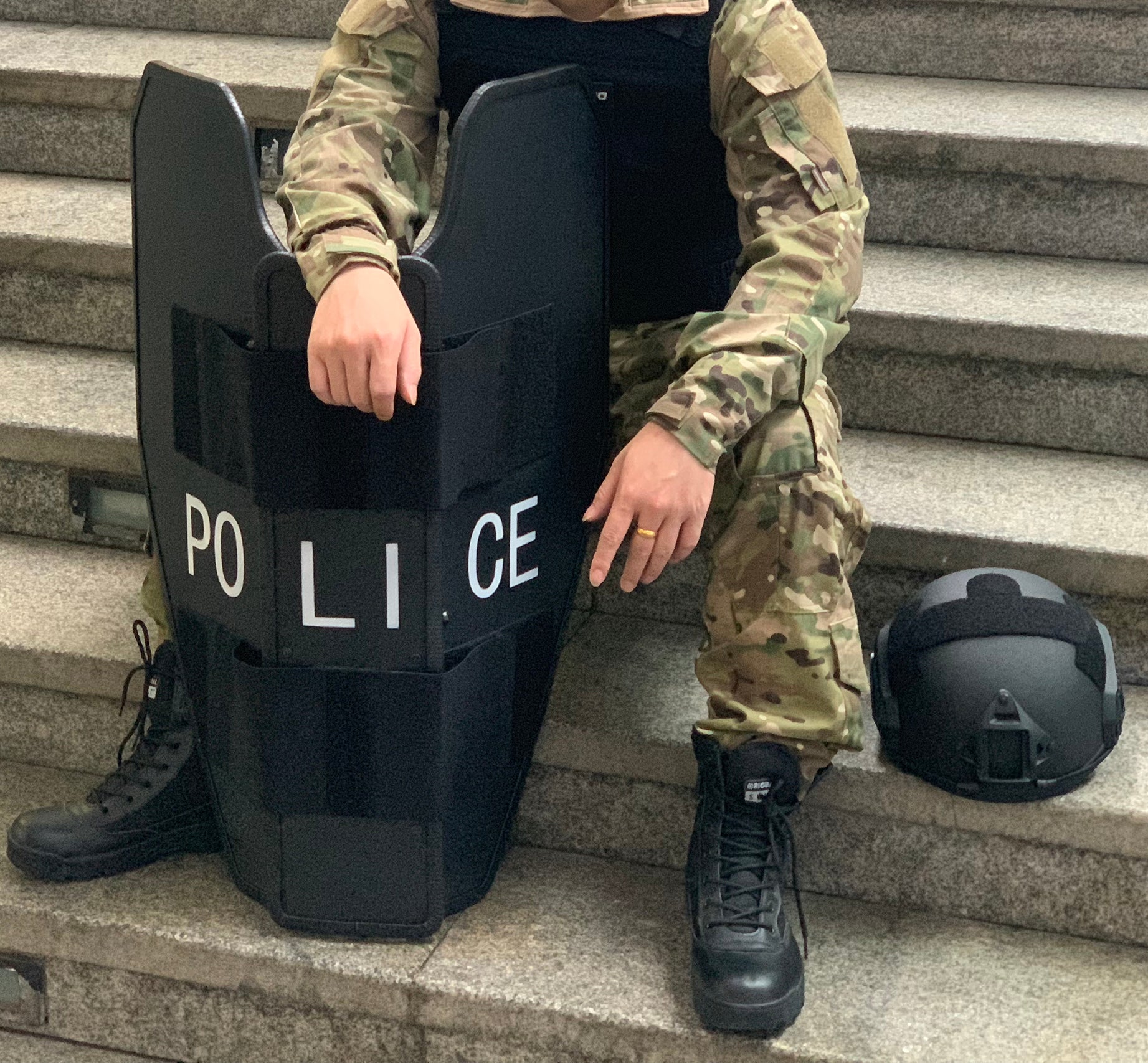 This is the perfect Law Enforcement, Government Agency, Schools, Business, or as a Personal Safety Shield. At 32" high x 31.5" wide (unfolded) it gives vital personal protection when needed. At a mere 12.8 lbs, it gives you the protection you need without the heavy weight normally associated with this kind of protection. It can also be carried in your car or placed strategically at your business. It is particularly great for Officers and Teachers.